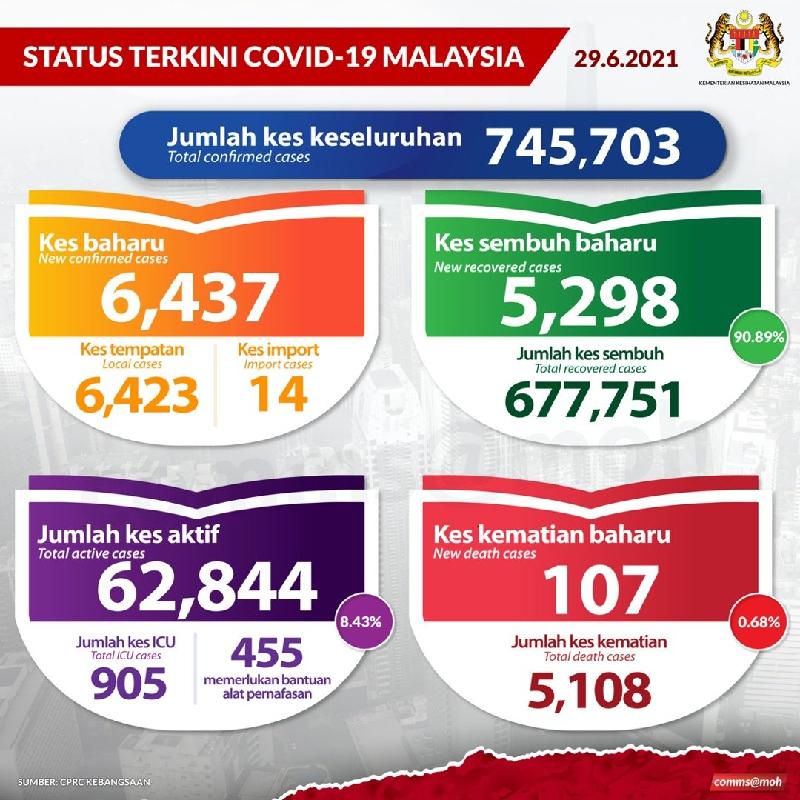PUTRAJAYA, June 29 (Sin Chew Daily) – A total of 6,437 new COVID-19 cases were reported in the country as of noon today, including 14 imported cases.