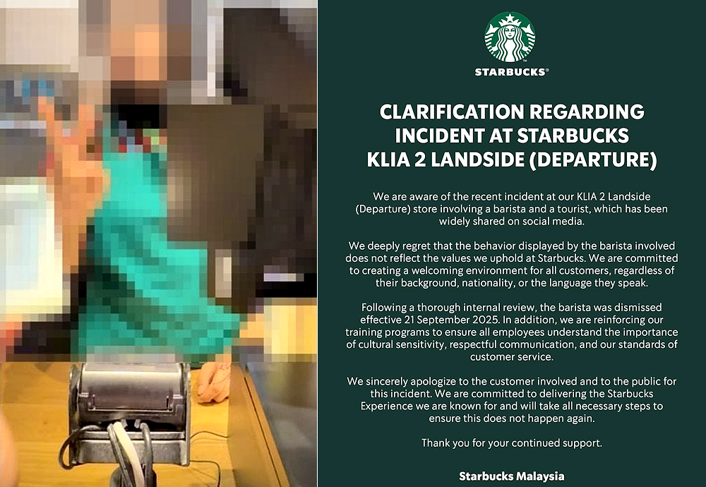 KUALA LUMPUR: A barista loses her job with Starbucks after the video clip of her uttering “bodoh” at a Chinese tourist trying to order drinks at the café located at the departure level of KLIA Terminal 2 went viral on social media.