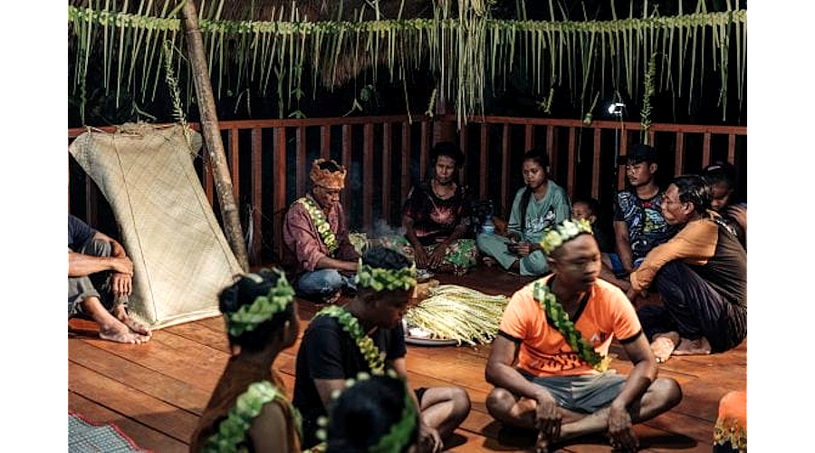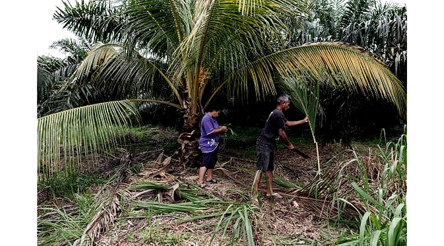 Although their ancestral forests have long been replaced by oil palm plantations, the community deliberately cultivates a few coconut trees specifically for healing ceremonies.