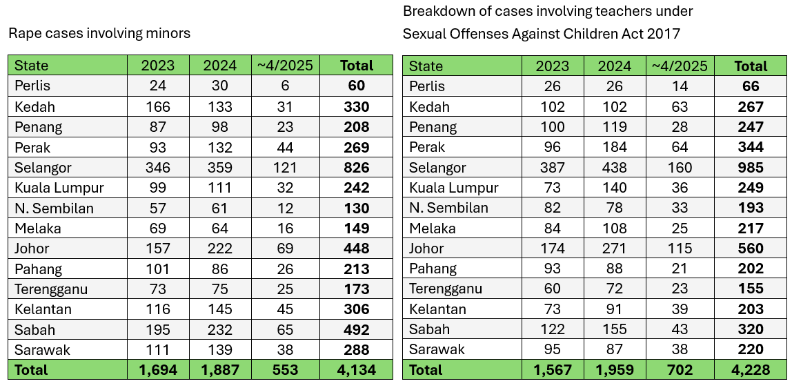 Cases involving teachers have also increased too, with a total of 4,228 reports of child sexual abuse received between 2023 and April 2025—1,567 cases in 2023 and 1,959 last year, and 702 cases for the first four months this year.