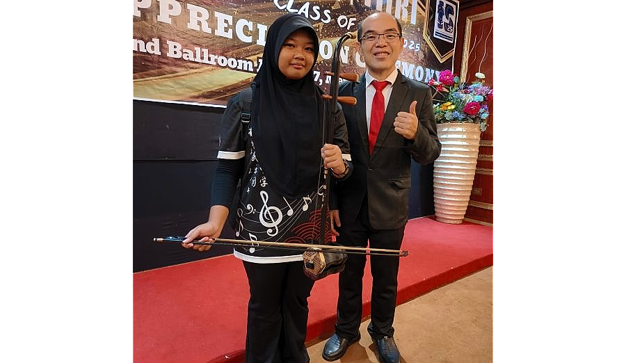 Khiu Chiong Tieu, the Chinese orchestra instructor at SMK St Columba Miri, praised Irdina as one of the most disciplined and dedicated non-Chinese students he had ever taught.