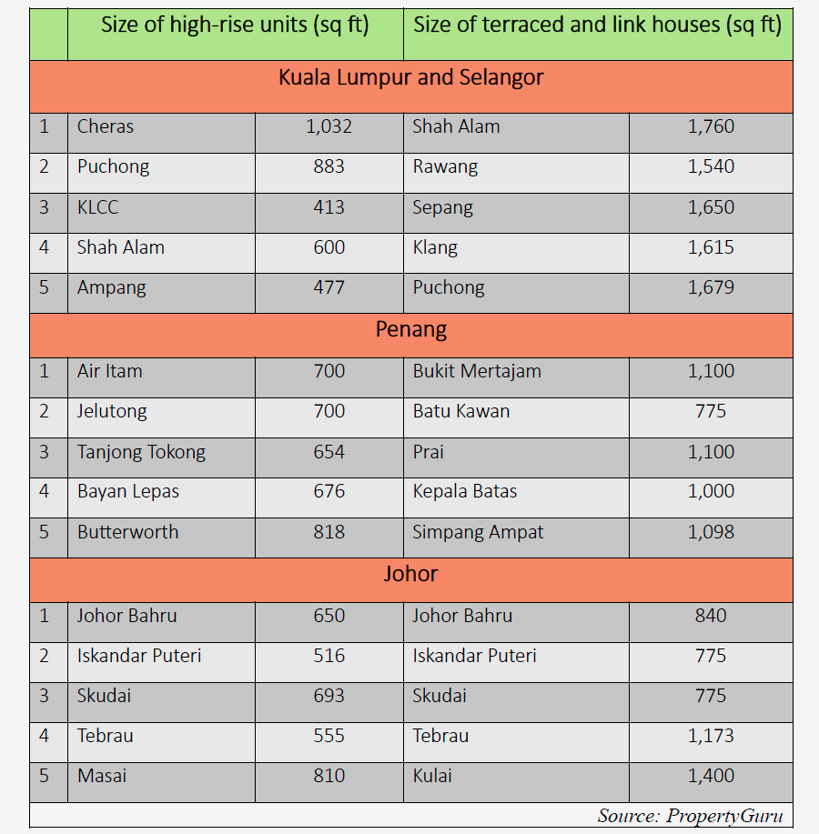 Properties below RM300,000 in Kuala Lumpur, Selangor, Penang and Johor (ranked by PropertyGuru search volume)