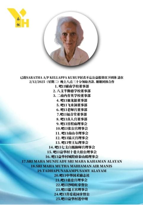 The deceased, K. Saratha, 87, who passed away on Dec 1, was Jeghanathan (Raja)’s mother-in-law, also known as the Indian village chief by local residents.